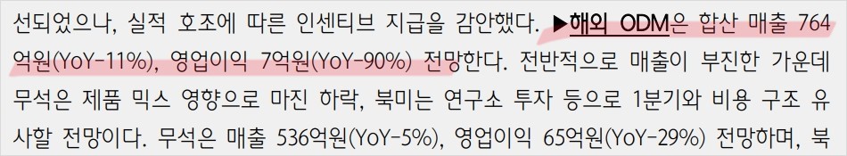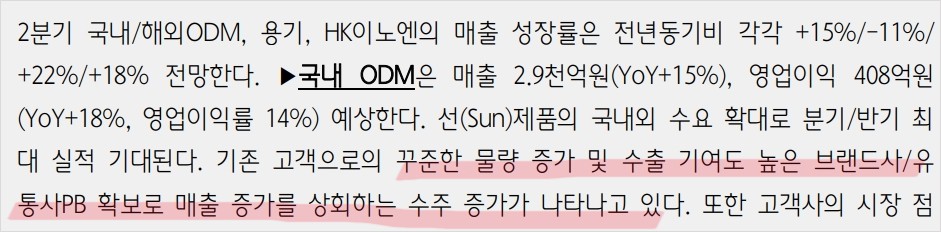 - 국내외 ODM 매출이 크게 증가하고 있음