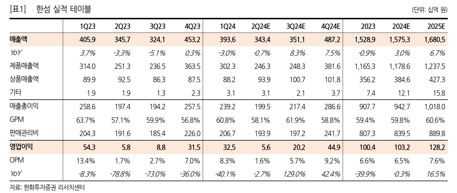 한섬은 국내 패션 업계에서 주목받는 기업으로, 최근 주요 브랜드의 성공적인 확장과 함께 성과를 보이고 있음 . 향후 매출 증가와 영업이익 상승을 통해 주가도 긍정적인 흐름을 보일 것으로 전망됨. 2024년 예상 매출액은 1조 5,753억 원, 영업이익은 1,032억 원으로 설정됨.