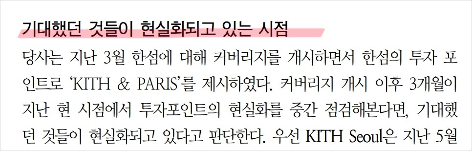 - 기술적 분석 내용: KITH Seoul의 성공적인 출점과 높은 인기도