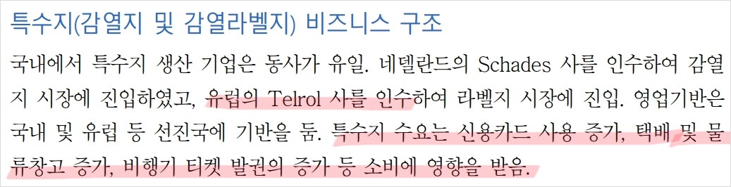 최근 한솔제지는 주요 제품의 가격 인상을 단행했으며, 이는 펄프 가격 인상과 운송비 상승에 따른 조치임. 또한, 2024년 선거 시즌으로 인해 인쇄용지 수요가 증가할 것으로 예상됨. 한솔제지는 네덜란드 Schades사와 유럽 Telrol사를 인수하여 감열지와 라벨지 시장에 진입하며, 국내외 시장 점유율을 확대하고 있음. 이러한 노력은 매출 증가와 영업이익 개선에 기여할 것으로 보임.