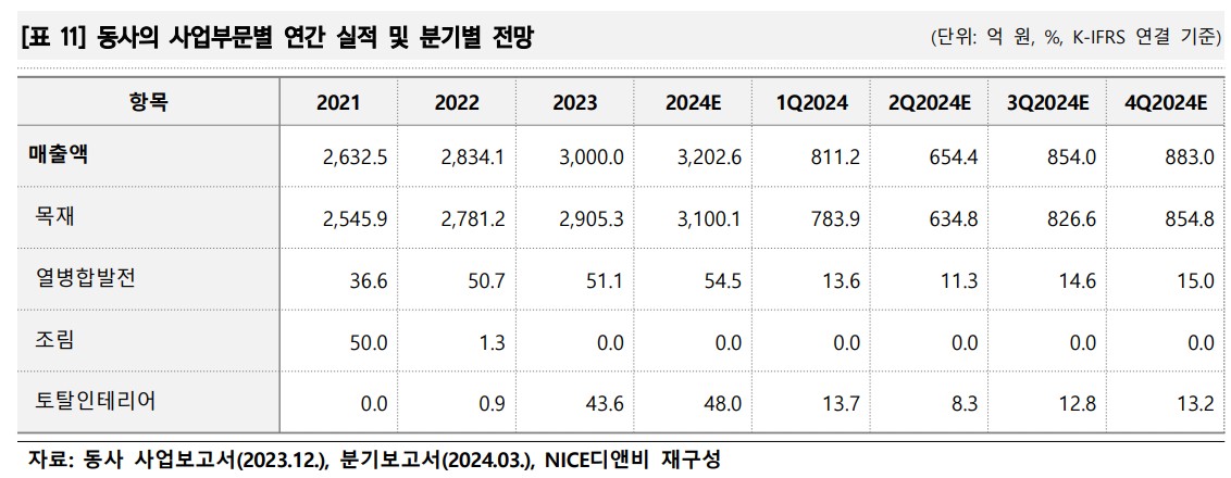 한솔홈데코는 친환경 인테리어 자재 전문기업으로, 주요 제품인 MDF와 강화마루는 국내 시장에서 높은 점유율을 차지하고 있음. 최근에는 재생원료 사용 비중을 높이고, 방염 기능을 추가한 고기능성 제품을 출시하여 시장 변동성에 대응하고 있음. 2023년 매출액은 3,000억 원, 영업손실은 21.1억 원을 기록했으며, 2024년 1분기에는 811.2억 원의 매출액과 17.6억 원의 영업이익을 기록함. 탄소중립과 자원 재활용을 통해 ESG 경영을 실천 중임.