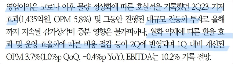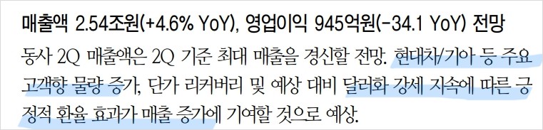 • 현대차 및 기아 등 주요 고객사향 물량 증가