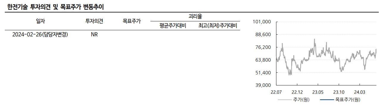 한전기술의 주가는 최근 체코 원전 프로젝트 수주 기대감과 SMR 기술개발 소식에 긍정적인 흐름을 보이고 있음. 체코 원전 수주 성공 시 주가 상승 가능성이 큼. 한전기술의 목표주가는 85,000원으로 설정되었으며, 이는 현재 주가 대비 상승 여력이 충분함. 원전 및 SMR 기술의 성장 가능성을 고려할 때 한전기술의 주가는 긍정적인 흐름을 이어갈 것으로 보임.