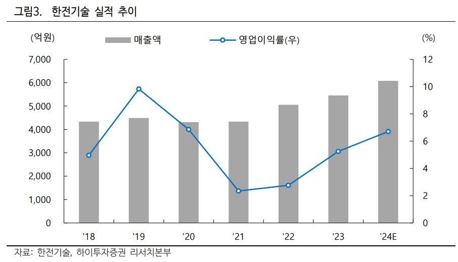 한전기술의 재무상황은 안정적임. 2024년 매출액은 6,078억원, 영업이익은 406억원으로 예상됨. 재무구조가 견고하여 안정적인 성장을 기대할 수 있음. 최근 몇 년간 꾸준한 매출 증가와 함께 영업이익도 상승세를 보이고 있음. 이와 같은 재무상황은 한전기술의 장기적인 성장 가능성을 뒷받침함. 안정적인 재무상황이 한전기술의 장기적인 성장을 더욱 견고하게 만들어 줄 것임.