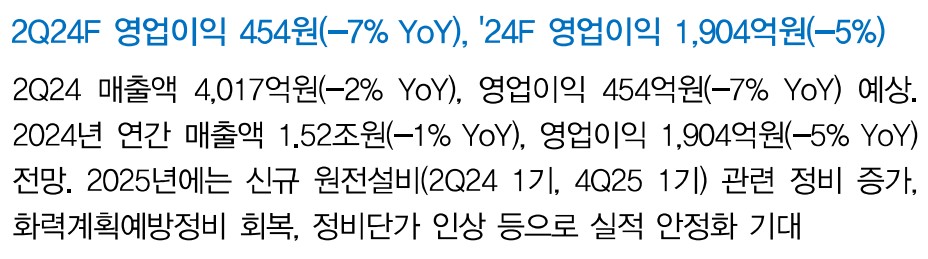 한전KPS는 전력 설비 유지보수와 신재생에너지 매출 증가가 기대되며, 주요 고객사의 계약 연장이 실적에 긍정적 영향을 줄 전망임. 투자 의견은 "매수"를 유지함.