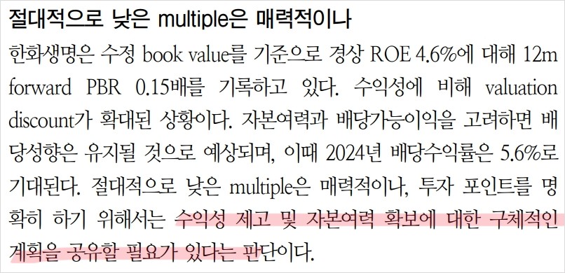 한화생명 주가 전망 | 목표주가 | 기업분석 | 다 좋은데 주가 상승률이 크지 않다