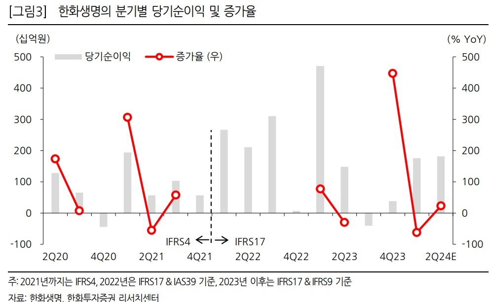 A. 한화생명은 2024년 2분기 실적에서 1,813억원의 순이익을 기록할 것으로 예상되며, 이는 전년 동기 대비 23% 증가한 수치임.