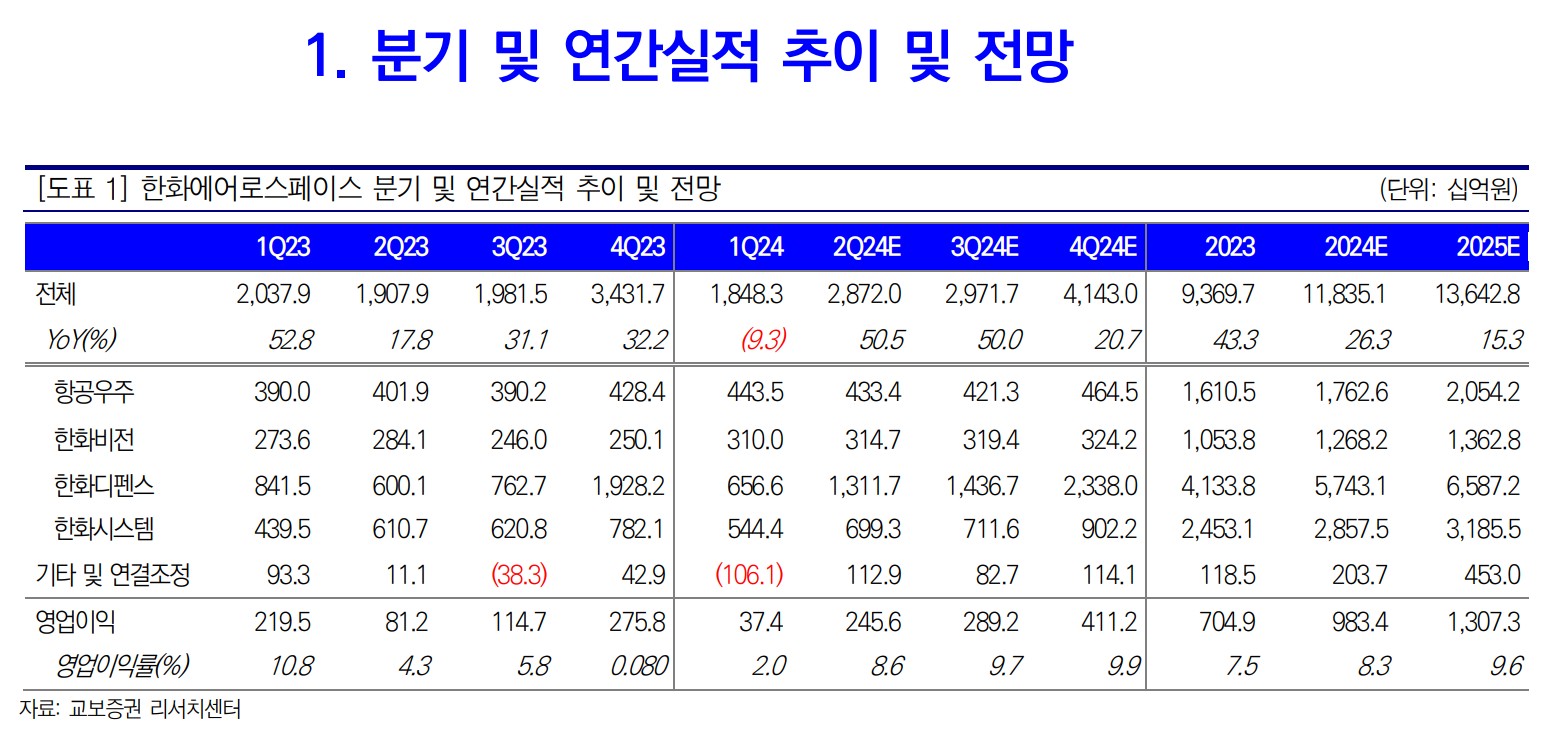 한화에어로스페이스는 항공 및 방위산업 분야에서의 강력한 입지를 바탕으로 안정적인 성장을 이어가고 있음. 주요 프로젝트의 수주와 매출 인식이 지속되고 있으며, 루마니아와 폴란드 등 주요 수출 계약이 긍정적인 영향을 미치고 있음. 목표 주가는 313,000원으로 설정되었으며, 이는 투자자들에게 매력적인 기회를 제공함.