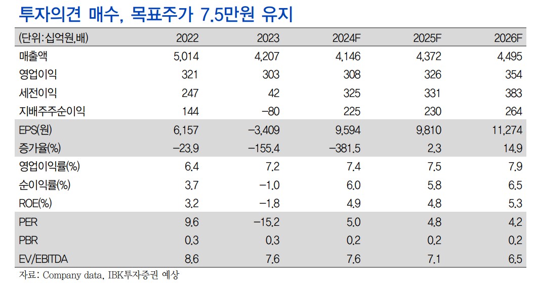 현대백화점은 최근 실적 부진에도 불구하고, 하반기 실적 개선이 기대됨. 특히, 지누스의 실적 개선이 전체 실적에 긍정적인 영향을 미칠 것으로 보임. 목표주가는 75,000원으로 유지되며, 현재 주가는 47,950원임.