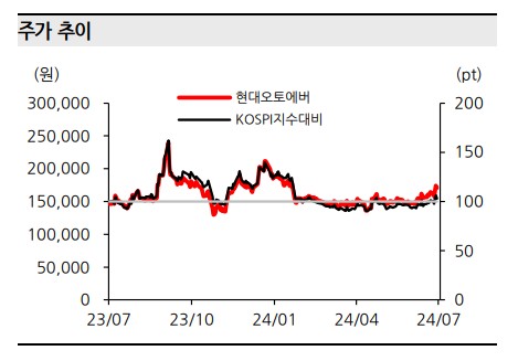 현대오토에버의 주가는 현재 170,500원으로, 목표주가는 200,000원임. 이는 현재 주가 대비 17.3%의 상승 여력이 있는 것으로 평가됨. 고부가가치 IT 프로젝트와 차량SW 매출 증가가 주가 상승의 주요 요인으로 작용할 전망임. 특히, 주요 고객사의 계약 연장이 실적에 긍정적인 영향을 줄 것으로 예상됨. 따라서 현대오토에버 주가는 향후 1년간 상승세를 보일 것으로 전망됨.