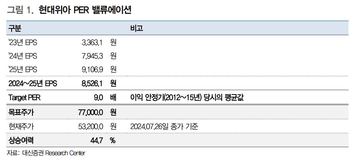 대신증권에서는 현대위아의 목표주가를 80,000원으로 설정했음. 이는 현재 주가 대비 약 50.3%의 상승 여력이 있음을 나타냄. 현대위아의 엔진 사업 턴어라운드와 신사업 모멘텀이 주가 상승에 긍정적인 영향을 미칠 것으로 예상됨.