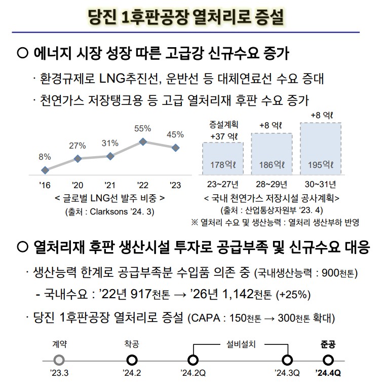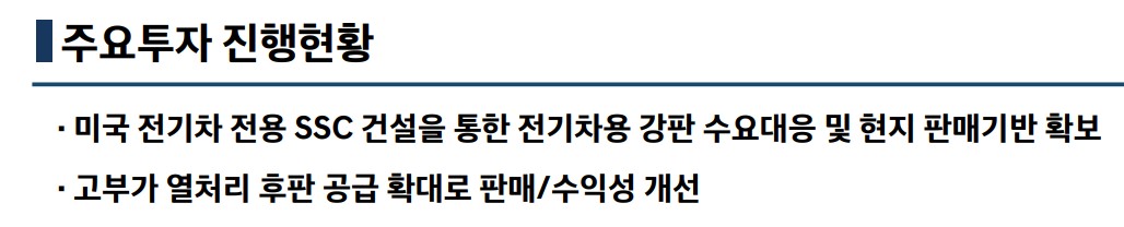 24년 하반기에는 여러 투자 성과들이 가시화되는 시점임. 미국 조지아주 전기차전용SSC건설, 당진1후판공장 열처리로 증설 등 투자 성과가 나오는 해이니 현대제철 주주분들은 하반기까지만 존버 가즈아아아아앙 배당금도 1000원씩 주니까 뭐!! 배당금 받으면서 버텨!!
