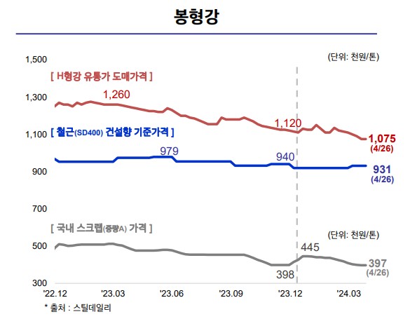 현대제철은 최근 몇 가지 중요한 이슈에 직면해 있음. 2024년 1분기 실적 발표에 따르면, 연결 매출은 5,948억 원으로 전년 동기 대비 7.0% 감소했음. 이는 글로벌 철강 수요 부진과 국내 건설업황 악화에 기인함. 또한, 봉형강 부문의 실적이 인허가 및 착공 면적 감소로 인해 부진함.