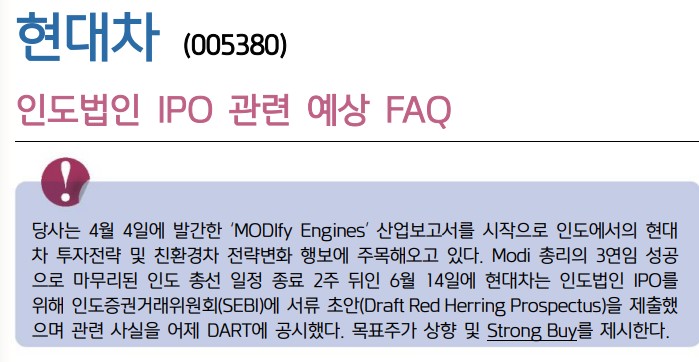 현대차 인도 상장 질문