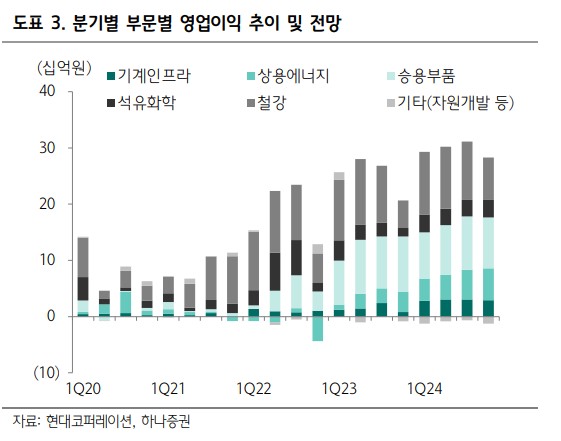 현대코퍼레이션의 주가는 다양한 사업부문의 안정적인 성장과 신사업 확장에 따른 기대감으로 인해 긍정적인 흐름을 보일 전망. 특히 철강, 석유화학 부문의 지속적인 성장과 더불어 기계인프라, 상용에너지 부문의 성과가 주가 상승에 기여할 것으로 예상됨. 목표주가는 33,000원으로 설정됨.