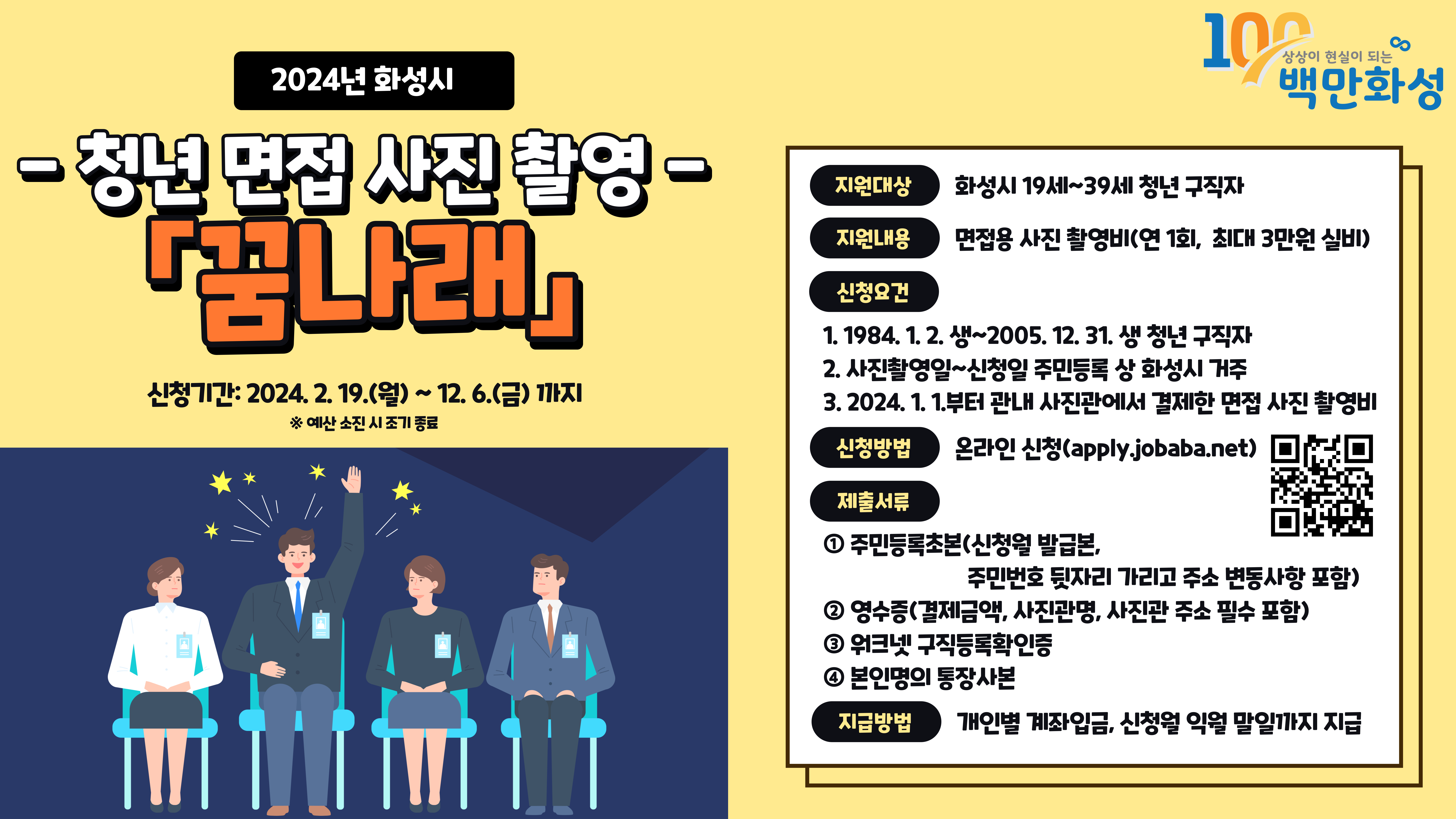 화성시에는 청년들이 정말 많이 거주하고 있죠? 면접을 볼 때 사진 이쁘게 찍는것도 기술이고 돈이 들어가지고 부담스러운데, 이 청년면접사진촬영비를 화성시에서 지원한다고 합니다. 곧 면접을 볼 분들, 반명함판 사진을 찍어야 하는 분들은 꼭 관심있게 보십쇼!!