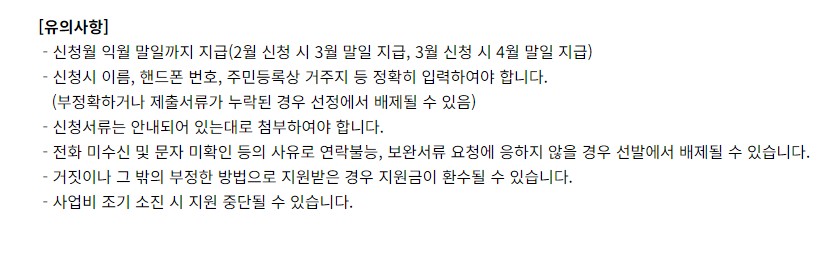 - 제출서류: 신청서, 주민등록등본, 면접확인서 또는 면접 일정 확인 가능한 서류