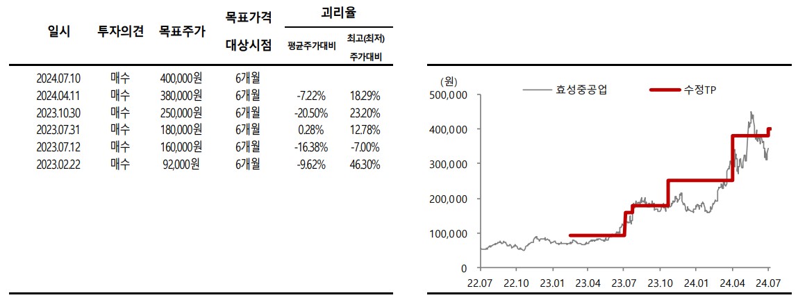 목표주가는 400,000원으로 설정되었음. 이는 변압기 생산공장 증설과 전력기기 수요 증가를 반영한 것으로, 향후 주가 상승 여력이 충분함.
