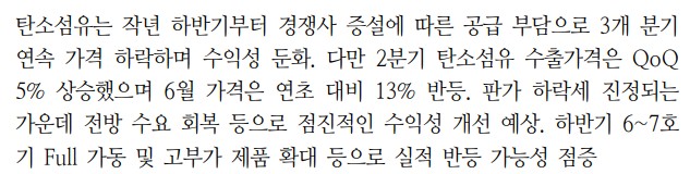- 기술적 분석 내용: 탄소섬유 부문의 매출 증가와 수익성 개선
