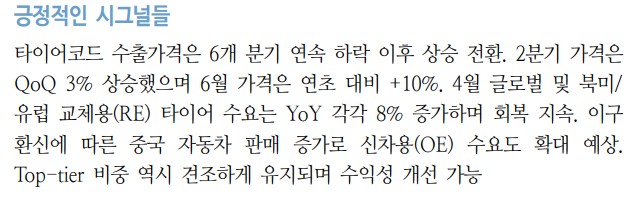 - 타이어보강재 및 탄소섬유 부문의 매출 증가