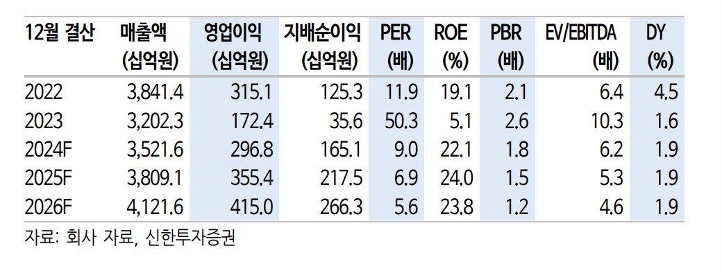 효성첨단소재는 2024년 하반기부터 타이어보강재와 탄소섬유 부문의 매출 증가와 수익성 개선이 예상됨. 특히 2024년 3분기부터 탄소섬유 부문의 매출이 본격적으로 증가할 것으로 예상되며, 이로 인해 전체 매출과 영업이익이 크게 증가할 전망임. 타이어보강재 부문은 전방 수요 회복과 판매 가격 상승으로 업황 개선이 기대됨.