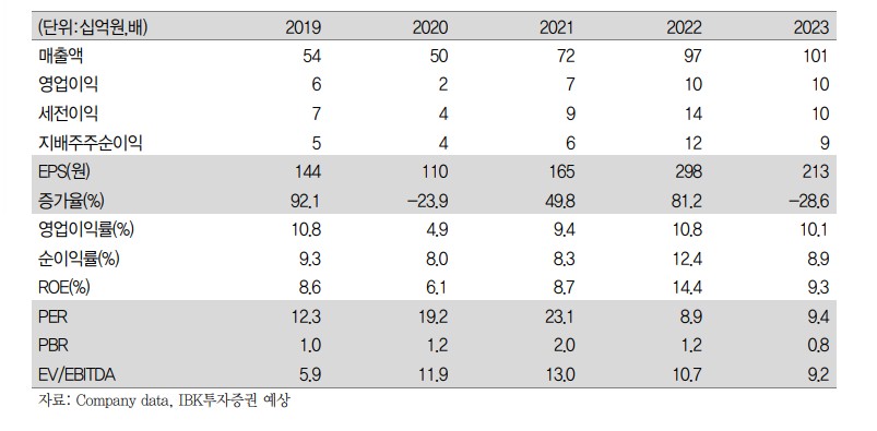 | PER | 23.1배 | 8.9배 | 9.4배 | 9.4배 |