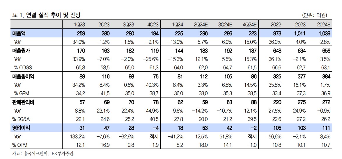흥국에프엔비 주가 전망 좋음!! 2024년 예상 매출액은 1,039억 원, 영업이익은 111억 원으로 전망됨. 특히 무더위로 인한 음료 수요 증가와 스타벅스 시즌음료 원료 납품 증가가 실적에 긍정적인 영향을 미칠 것으로 예상됨. 폭염 관련주로 엮여서 아주 기냥 응?