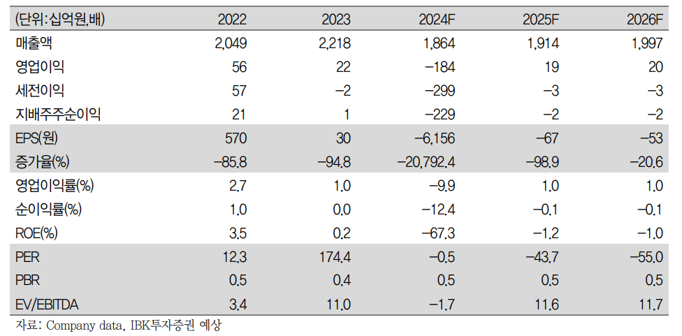 2024년 금호건설의 매출액은 1,864억 원으로 전년 대비 15.9% 감소할 것으로 예상되며, 영업적자도 -184억 원에 이를 것으로 보입니다. ROE는 -67.3%로 낮은 수준이며, 부채비율은 759.3%로 매우 높은 수준을 기록하고 있습니다. 이러한 상황은 기업의 재무 건전성을 악화시키고 있어, 강력한 비용 절감과 사업 다각화가 요구됩니다.