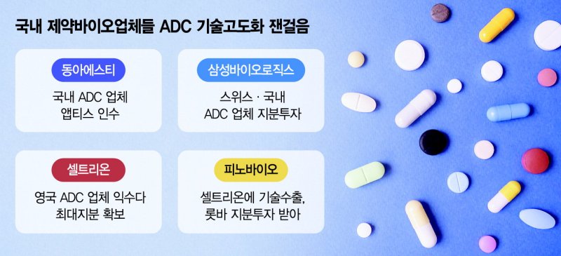 셀트리온은 ADC 기술을 이용한 항암제 개발을 활발히 진행 중인 기업 중 하나임. 최근 다수의 글로벌 제약사와 파트너십을 체결하여 연구개발을 가속화하고 있음. 셀트리온의 ADC 파이프라인은 다양한 암종을 타겟으로 하며, 특히 유방암과 혈액암 분야에서 두각을 나타내고 있음.