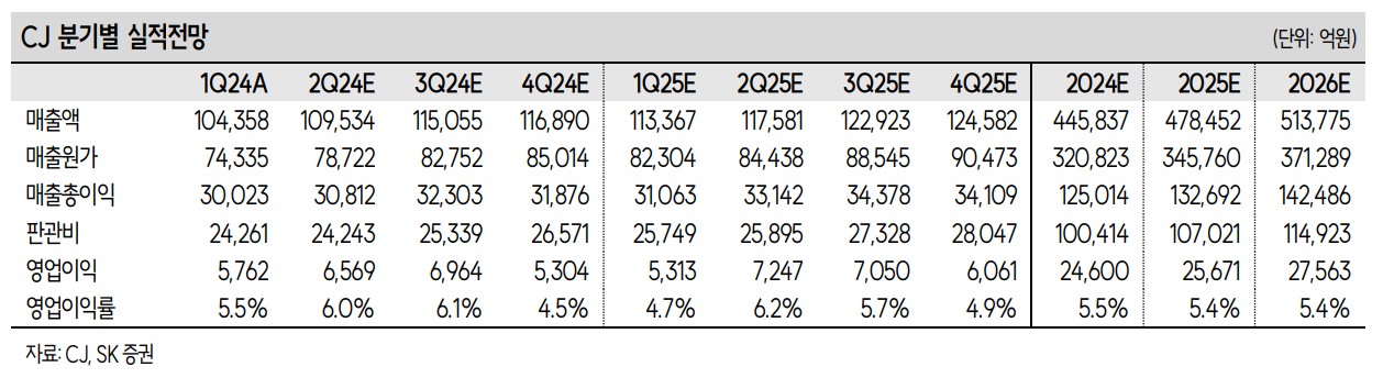 Q. CJ의 주가 전망은 어떻게 되나요?