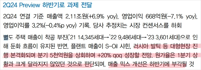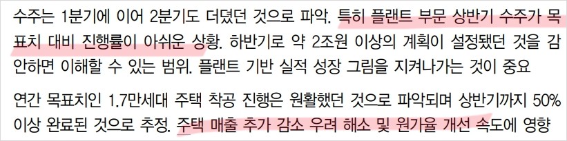 - 주택 매출 둔화와 플랜트 수주 지연