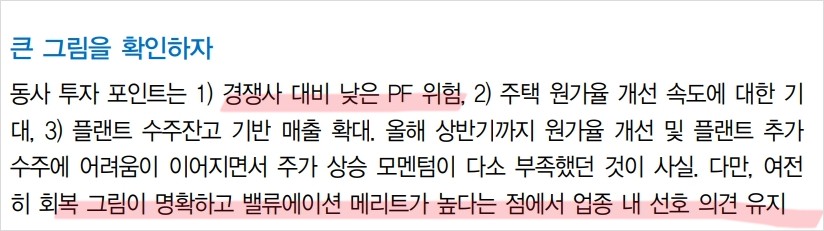 • 기본적 분석: 낮은 PF 위험, 원가율 개선 기대