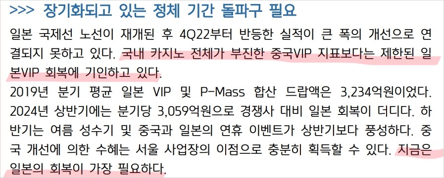 - 미래 주가 전망: 일본 회복 여부와 중국 VIP 고객 증가에 달림