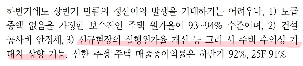 • 주택 부문 실적이 전반적인 회사 실적 개선에 크게 기여하고 있음