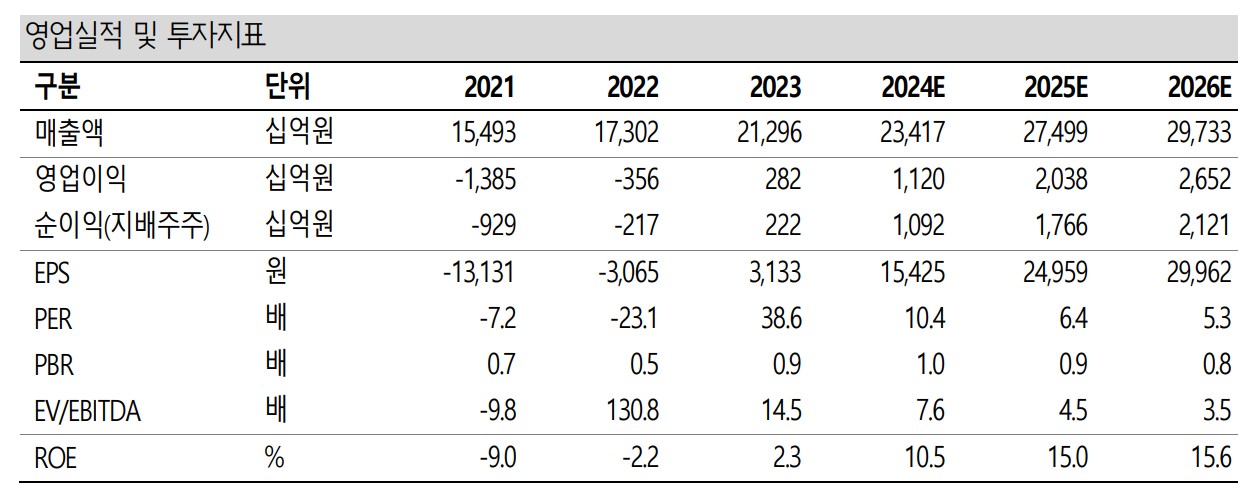 HD한국조선해양은 최근 수주잔고를 다시 채우고 수익성을 챙기고 있음. 2024년 2분기 연결 매출액은 5조 7,552억 원으로 전년 대비 5.5%, 전 분기 대비 4.3% 증가할 것으로 예상. 영업이익은 2,745억 원으로 전년 대비 285.3%, 전 분기 대비 71.4% 증가할 것으로 추정됨. 조선 자회사들의 공정 안정화가 실적 개선에 기여하고 있음.