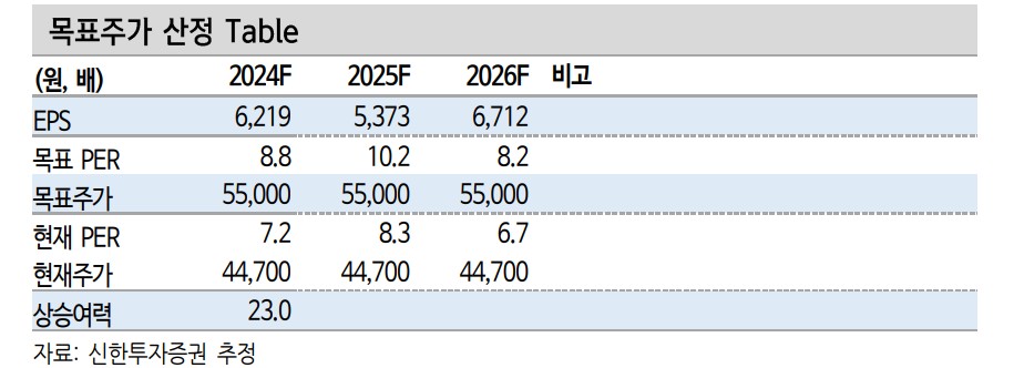 HL만도의 목표주가는 55,000원으로 설정되었습니다. 이는 현재 주가 대비 23% 상승 여력을 나타내며, 인도와 중국 시장에서의 높은 성장률과 고마진 제품 비중 증가가 주 요인입니다.
