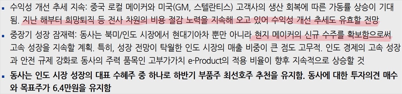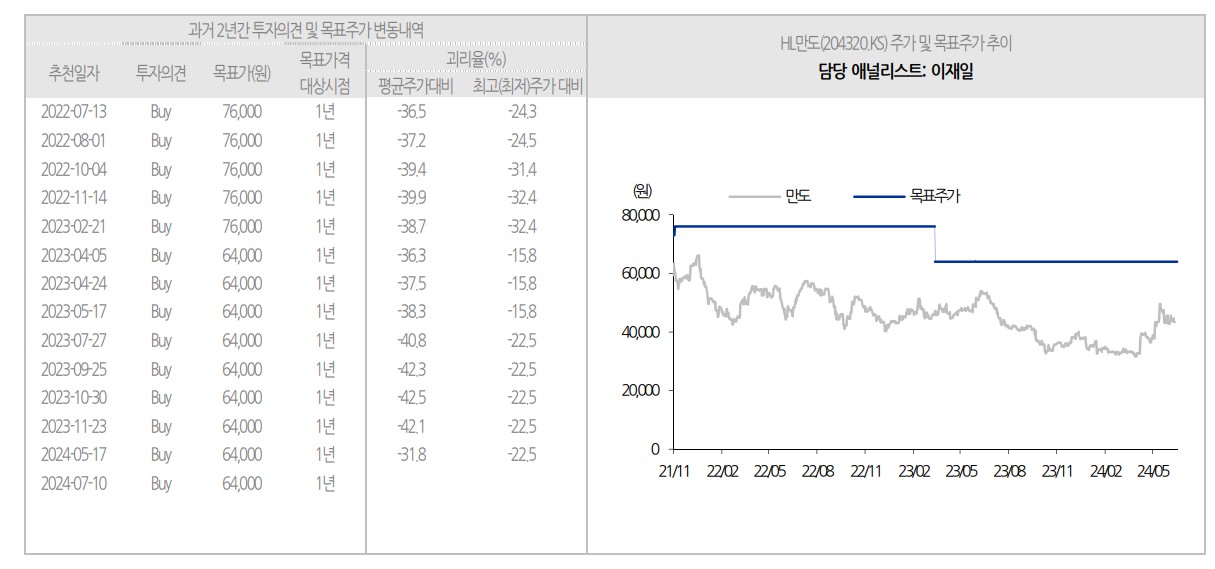 HL만도는 글로벌 시장에서의 생산 회복과 인도 시장의 고속 성장으로 인해 긍정적인 실적 전망을 보임. 목표주가 64,000원을 유지하며, 투자에 대한 최종 판단은 스스로 하길 바람. 진짜 나는 정말 만도가 잘 되었으면 좋겠음. 전 세계 글로벌 자동차 시장은 대한민국이 먹었으면 좋겠다구!! 으아아ㅏㅏㅏ