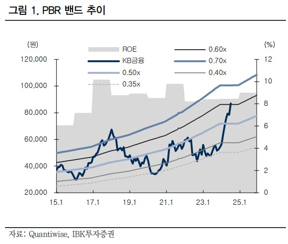 KB금융의 주가는 향후 긍정적인 흐름이 예상됨. 총주주환원율 40%를 기대하며, 이는 주가 상승의 주요 요인으로 작용할 것임. 추가적인 자사주 매입 및 소각 발표가 예상되며, 이는 주가에 긍정적인 영향을 미칠 것임.