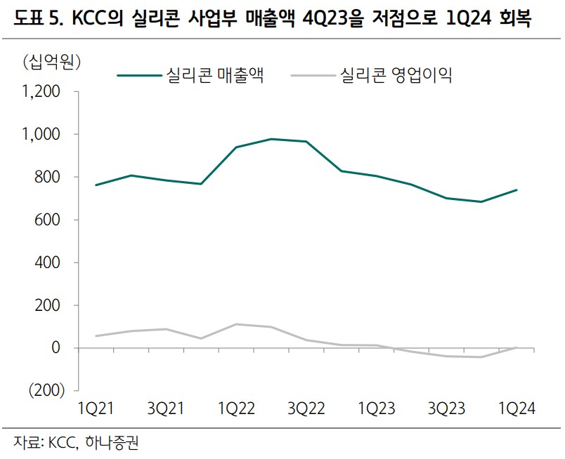 A. KCC의 실리콘 사업부는 흑자 전환을 달성했으며, 2025년까지 지속적인 성장이 예상됨.