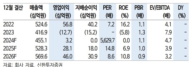 - 2024년 매출액 4,551억원, 영업이익 32억원 전망