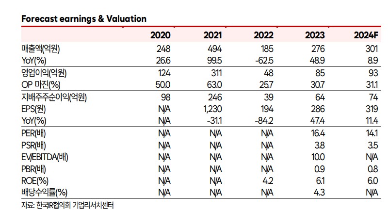 - 2023년 매출액 275억 원, 전년 대비 48.9% 증가