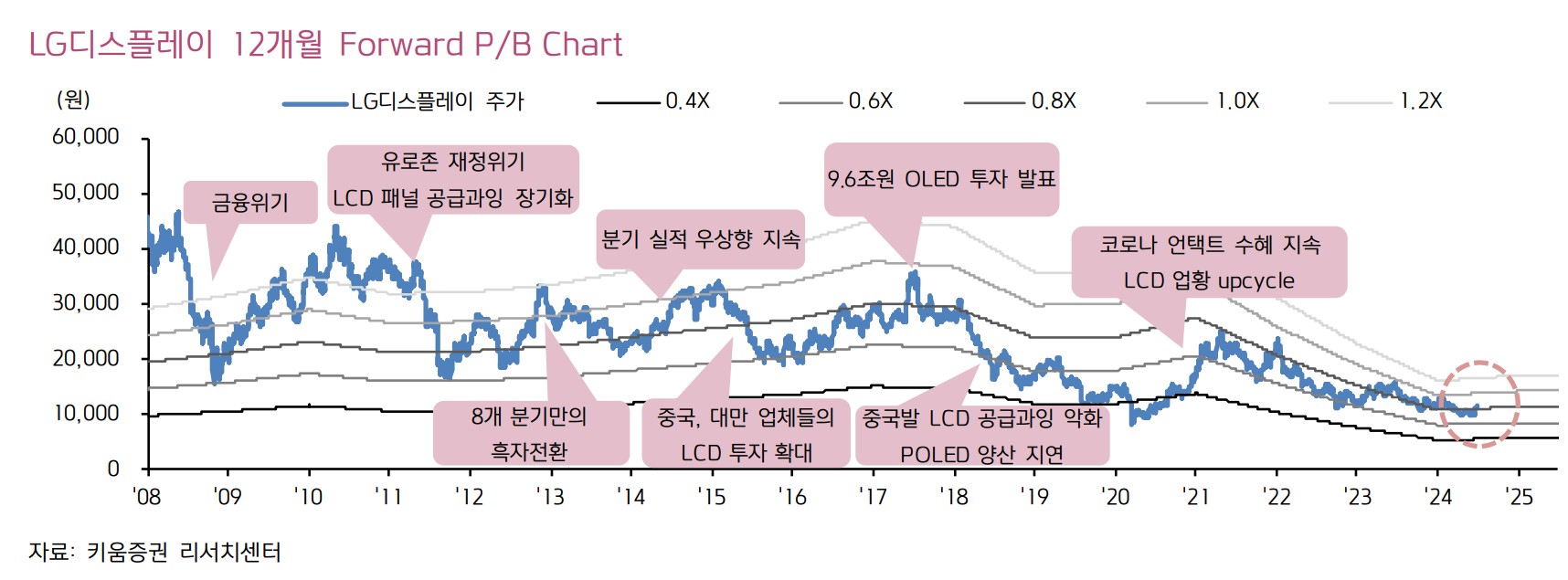 LG디스플레이의 주가는 OLED 사업부 성장과 함께 상승할 가능성이 큼. 하반기 흑자전환이 기대되며, 신제품 출하량 증가가 주가 상승을 견인할 것으로 보임. 단기적으로는 원/달러 환율 변동에 주의해야 함.