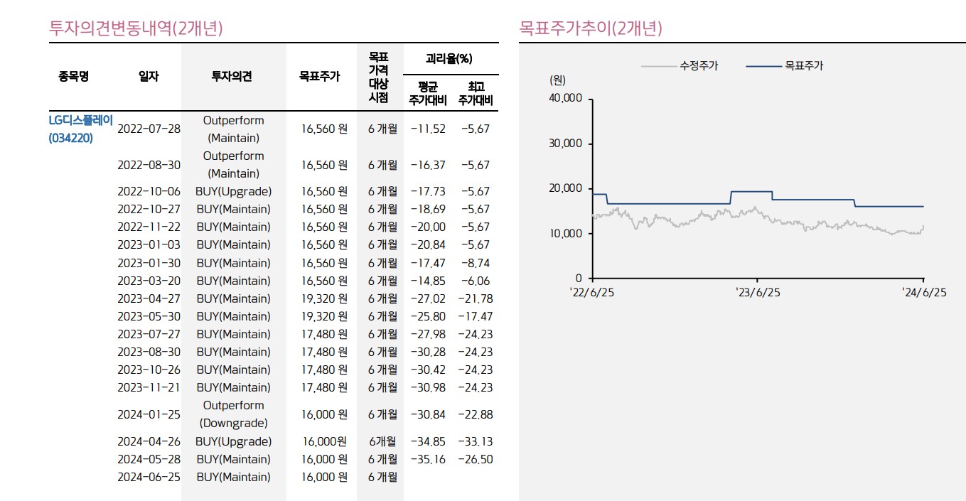목표주가는 16,000원으로 설정됨. 이는 OLED 사업부의 성장과 실적 개선을 반영한 것임.