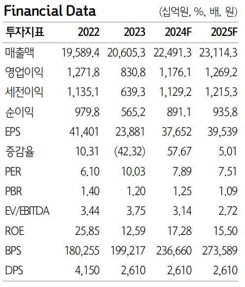 | 매출액 | 19,589.4 | 20,605.3 | 22,491.3 | 4,333.6 |