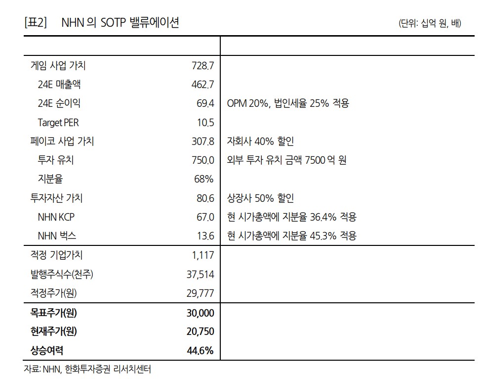 NHN 목표주가