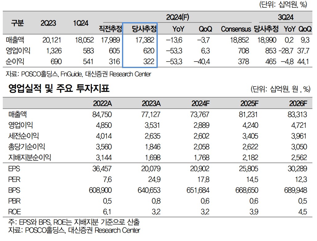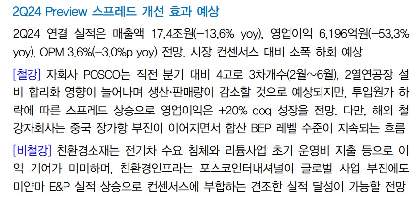 - 2Q24 연결 영업이익 6,196억원 전망, 전년 대비 53.3% 감소