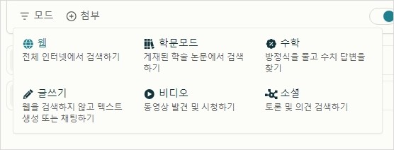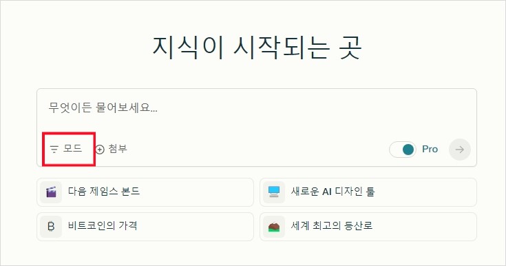 방법은 간단합니다. Perplexity 질문창 바로 밑에 모드 버튼을 눌러줍니다.