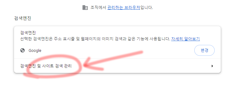 5. "검색엔진 관리"를 클릭합니다. 이 옵션은 페이지 중앙에 있습니다.