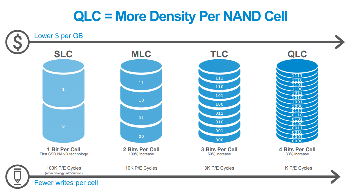 A. QLC 낸드는 하나의 셀에 4비트 데이터를 저장할 수 있는 고밀도 낸드 플래시 메모리 기술입니다.