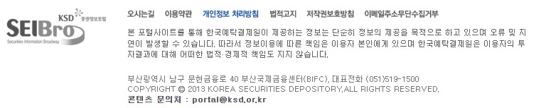 SEIBro(seibro.or.kr)는 증권 관련 정보와 데이터를 제공하는 종합 플랫폼입니다. 이 사이트는 투자자들에게 다양한 금융 정보와 자료를 제공하여 합리적인 투자 결정을 지원합니다. SEIBro는 증권, 채권, 파생상품 등의 실시간 시세와 각종 금융 지표를 제공하며, 다양한 리서치 자료와 분석 보고서를 통해 금융 시장의 최신 동향을 파악할 수 있도록 돕습니다.